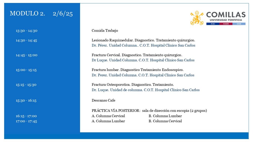 VIII JORNADASTEORICO-PRACTICASFRACTURAS VERTEBRALESFecha: 2 de Junio 2025 | Hora: 9:00 a 18:00 | Localización: Mobios LAB
